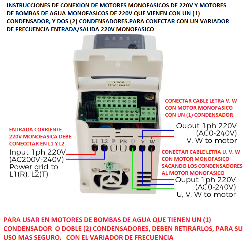 1. Entrada de Voltaje:1 fase AC240V 50/60Hz.